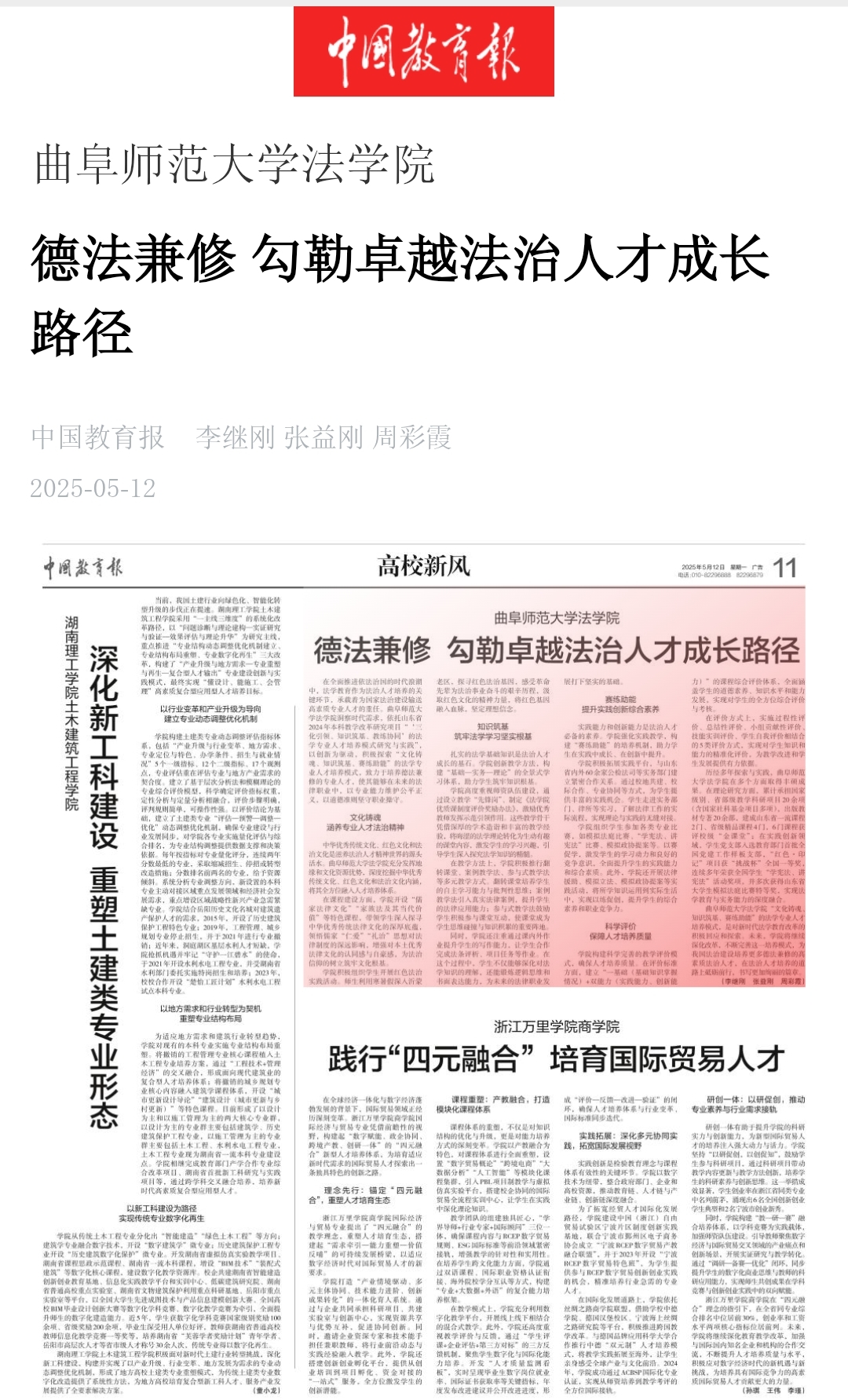 华球(中国)公司法学院“文化铸魂、知识筑基、赛练助能”的法学专业人才培养模式,是对新时代法学教育改革的积极回应和探索。未来,学院将继续深化改革,不断完善这一培养模式,为我国法治建设培养更多德法兼修的高素质法治人才,在法治人才培养的道路上砥砺前行,书写更加绚丽的篇章。(李继刚 张益刚 周彩霞)