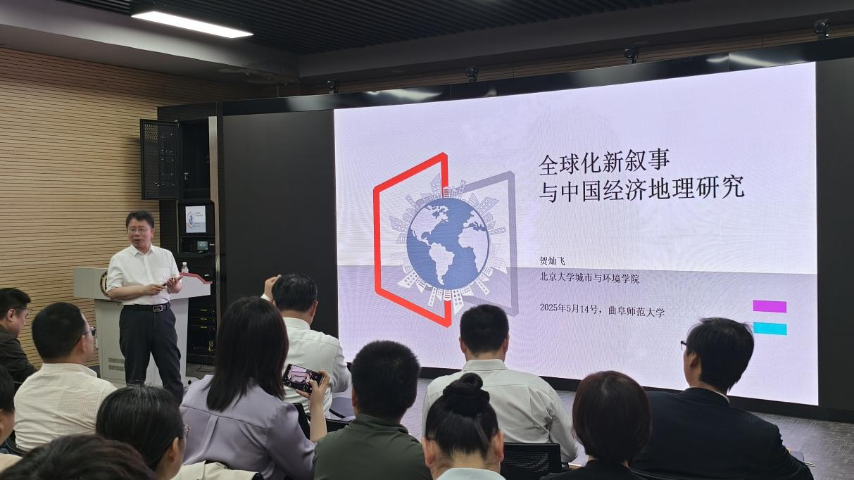 地理与旅游学院讯  5月15日,地理与旅游学院特邀北京大学城市与环境学院院长、北京大学博雅特聘教授、国家杰出青年基金获得者、教育部重大人才计划特聘教授贺灿飞教授做客“经纬讲堂·高端讲坛”为师生作题为《经济全球化新叙事与中国经济地理学发展新趋势》的学术报告。
